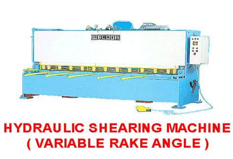 "WELDOR" Hydraulic Guillotine shearing machine with variable rake angle have been designed and